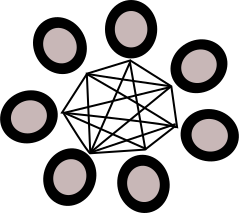 This features a large, intricate design with multiple circles and lines. Each circle is connected to the others by lines, creating an interconnected pattern. There are nine circles in total, each varying in size and positioned around the central point of the design. This unique pattern resembles a mandala or a geometric drawing, which can be used as a visual aid for facilitation notes during group discussions or meetings. The image's composition suggests that it could be used to represent complex ideas or concepts related to collaboration and interconnectedness among individuals.