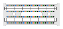 This features a punch-down block with various colored wires on it. These wires are multicolored, and they appear to be organized in rows. The block itself is grey and white in color, providing a contrasting background for the wires. This type of block is commonly used in electrical systems or telecommunications setups, where multiple cables need to be connected securely and efficiently.