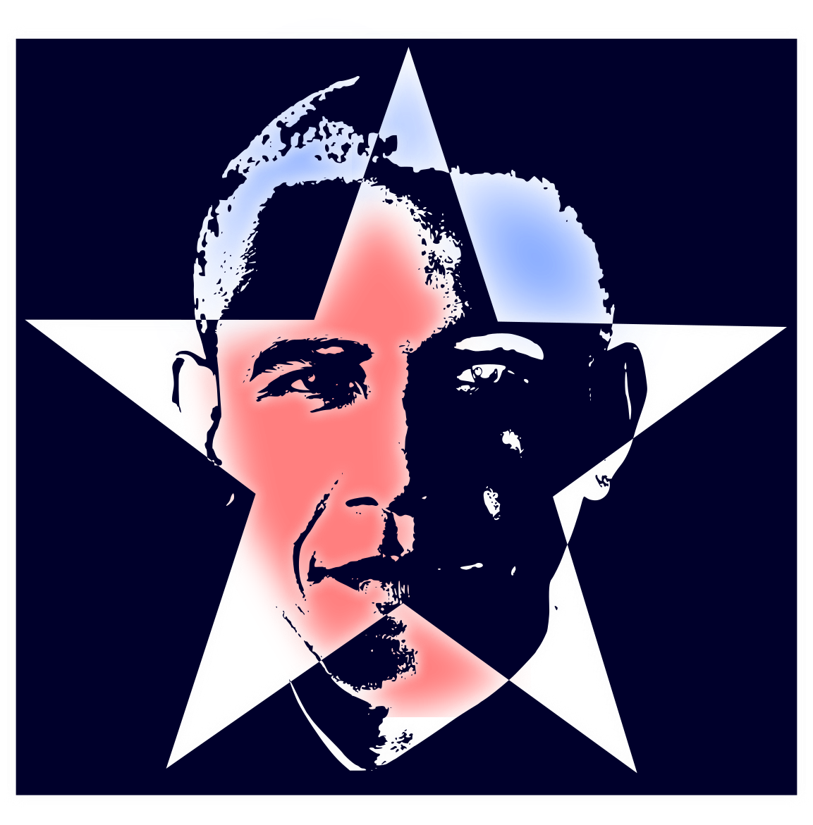 This features a black and white silhouette of President Obama, with the background being red, white, and blue. The star-filled background creates an interesting contrast against the man's face, making it stand out prominently in the picture. The combination of colors and the silhouette effect gives the image a striking visual appeal.
