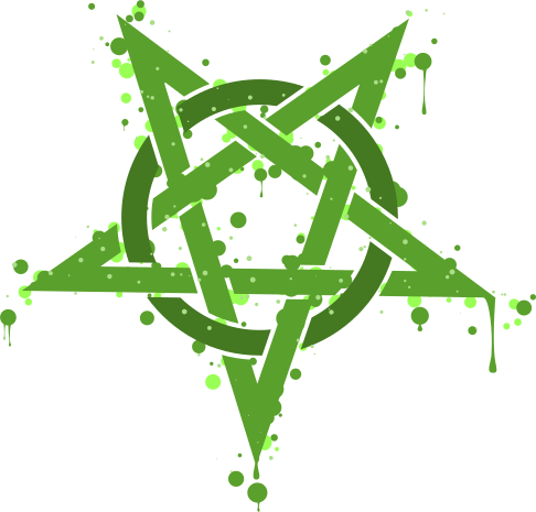 This features a green pentagram with a few drops of paint on it. The pentagram is surrounded by green spots, giving the impression that it's covered in paint or has been splattered with some substance. The overall effect creates an interesting and somewhat messy appearance for this symbol.