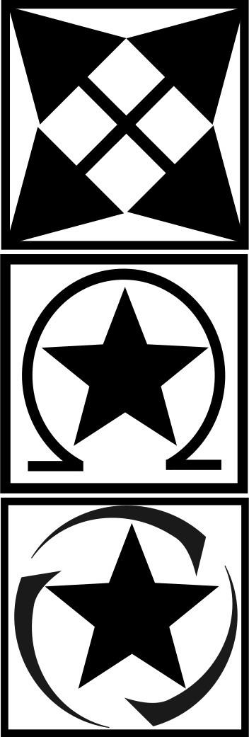 This features four black and white geometric shapes, each with a unique design. These symbols are arranged in a row, with one on the left side of the image, another in the middle, and two more on the right side. Each symbol is distinct from the others, showcasing different patterns and designs that make them visually appealing. The arrangement of these shapes creates an interesting visual effect, drawing attention to each individual symbol while also highlighting their collective presence within the image.