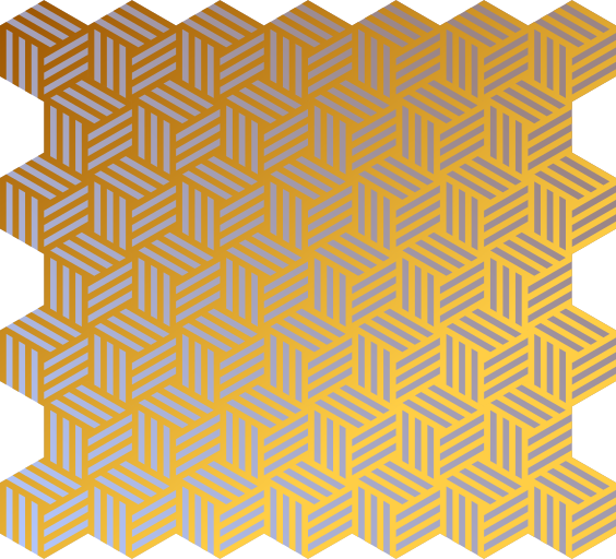 This features a large, intricate design made up of interconnected geometric shapes. These shapes are arranged in a way that creates an eye-catching pattern with a mix of silver and gold gradients. The overall effect is a visually appealing and complex design that showcases the artist's skill in creating detailed patterns using simple shapes.