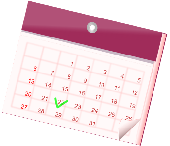This features a red and white calendar with the date of January 29th highlighted in green. A small arrow is pointing to this specific day, drawing attention to it. The calendar appears to be a part of a larger wall calendar, as there are several other dates visible on the page. The overall design of the calendar is simple yet effective at conveying important information.