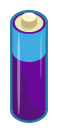 This features a purple and blue battery with a white top. It is placed on a brown background, which creates an interesting contrast between the colors of the battery and its surroundings. The battery appears to be a cartoon-like representation, adding a playful touch to the scene.