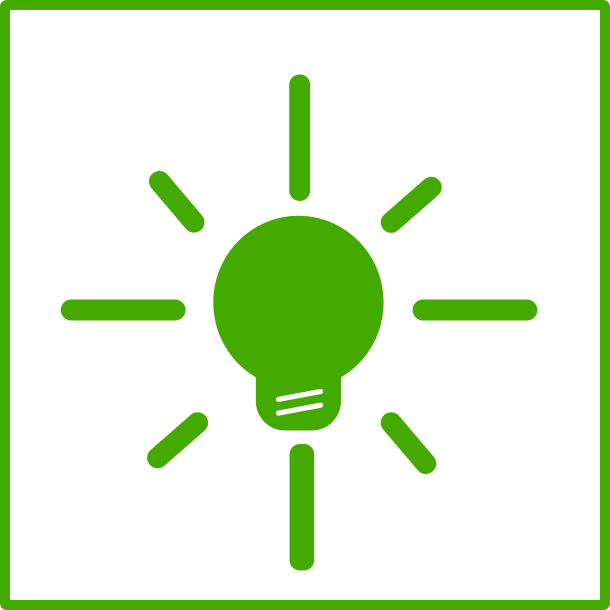 This features a green light bulb with a white border, which is placed in the center of an icon. This icon appears to be a symbol for a light bulb, and it has a bright green hue. The light bulb's shape is slightly curved, giving it a unique appearance. The overall design of this image creates a visually appealing representation of a light bulb in the context of an icon or logo.