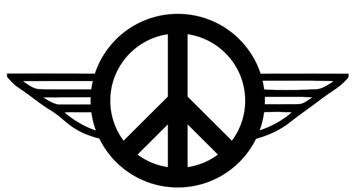This features a peace sign design with two wings attached to it. The sign is black and white in color, making it stand out against the background. The wings are positioned on either side of the peace sign, adding an interesting visual element to the overall design. This symbolic representation of peace can be used in various contexts, such as a logo or a decorative piece, to convey a sense of harmony and tranquility.