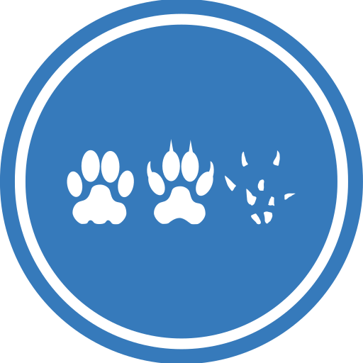 This features a blue circle with two paw prints inside of it. These paw prints are located towards the center of the circle, and they appear to be in white or light-colored contrast against the blue background. The design is simple yet visually appealing, making it an interesting focal point for viewers.