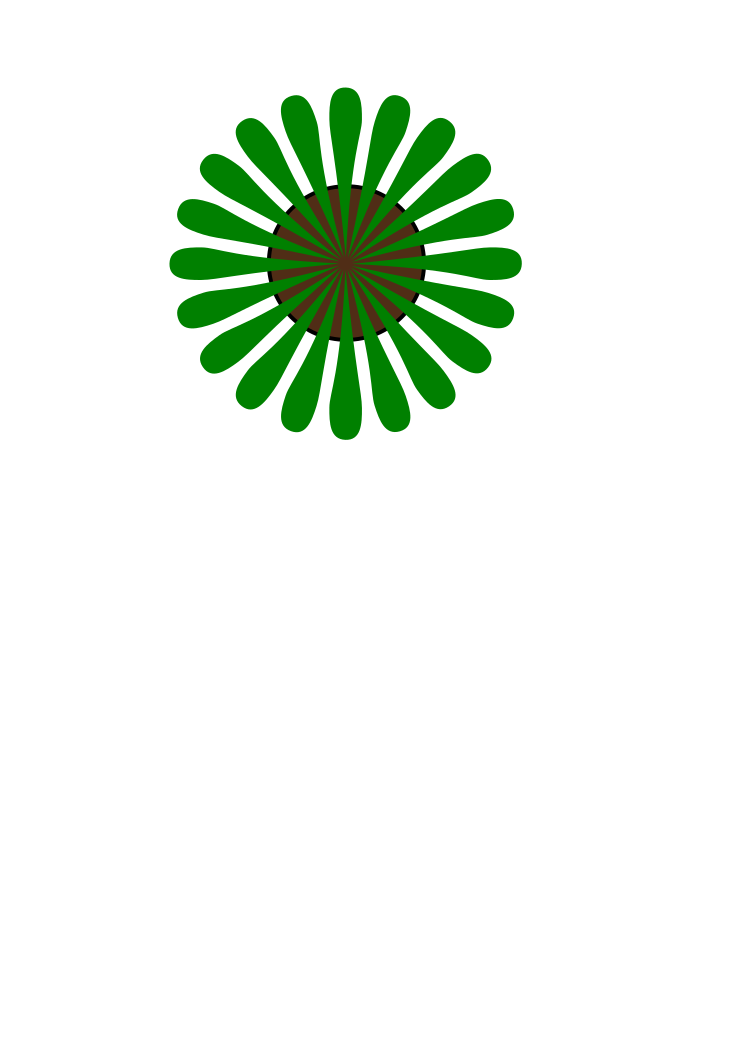 This features a large, circular design with green and brown colors. It appears to be an abstract representation of a plant or flower, possibly resembling a sunflower. The design is placed on a white background, which creates a striking contrast between the vibrant colors and the neutral tones. This artistic piece could serve as a decorative element in various settings, such as homes, offices, or public spaces.