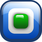 This features a square with a green button in the center. The button is large and takes up most of the space within the square, making it stand out prominently. The square itself has a blue background that complements the green button, creating an appealing visual effect. This design could be used for various purposes such as buttons on electronic devices or other interactive interfaces.