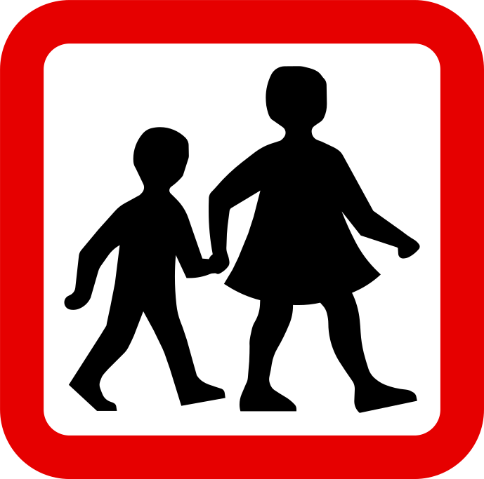 This features a red sign with two silhouettes of people walking. One person is on the left side, and the other is on the right side of the sign. They appear to be holding hands as they walk together. The sign seems to convey a message about children being allowed or not allowed in certain areas. The black and white design of the figures adds an artistic touch to the overall appearance of the sign.