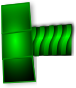 This features a green square with a spiral design on it. This unique shape is reminiscent of a bolt, and the color is vibrant and eye-catching. The spiral pattern adds an interesting visual element to the overall composition of the image.