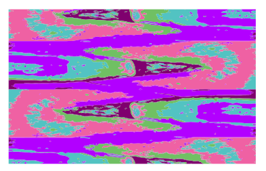This features a colorful, abstract design with a mix of pink and purple hues. The pattern is composed of various shapes, including circles and triangles, which are interspersed throughout the scene. These shapes create an interesting visual effect that draws attention to the artistic nature of the piece. The overall composition of the image gives it a dynamic and vibrant appearance, making it an eye-catching decorative element for any space.