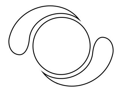 This features a white circle with a brown outline, giving it an interesting contrast. The circle is surrounded by two curved lines that appear to be part of the design. This unique symbol could represent various concepts or ideas, depending on its context and interpretation. It may evoke feelings of unity, connection, or even artistic expression. Overall, the image presents a visually appealing and thought-provoking piece.