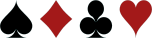 This features a collection of four different card suits, each represented by a unique design. The first suit is the spade, which is black in color and located on the left side of the image. Next to it is the diamond, red in color and positioned towards the center of the image. On the right side of the diamond, there is a black club, and finally, the heart is situated at the far right corner of the image. These four card suits are arranged in a row, showcasing their distinct designs and colors.