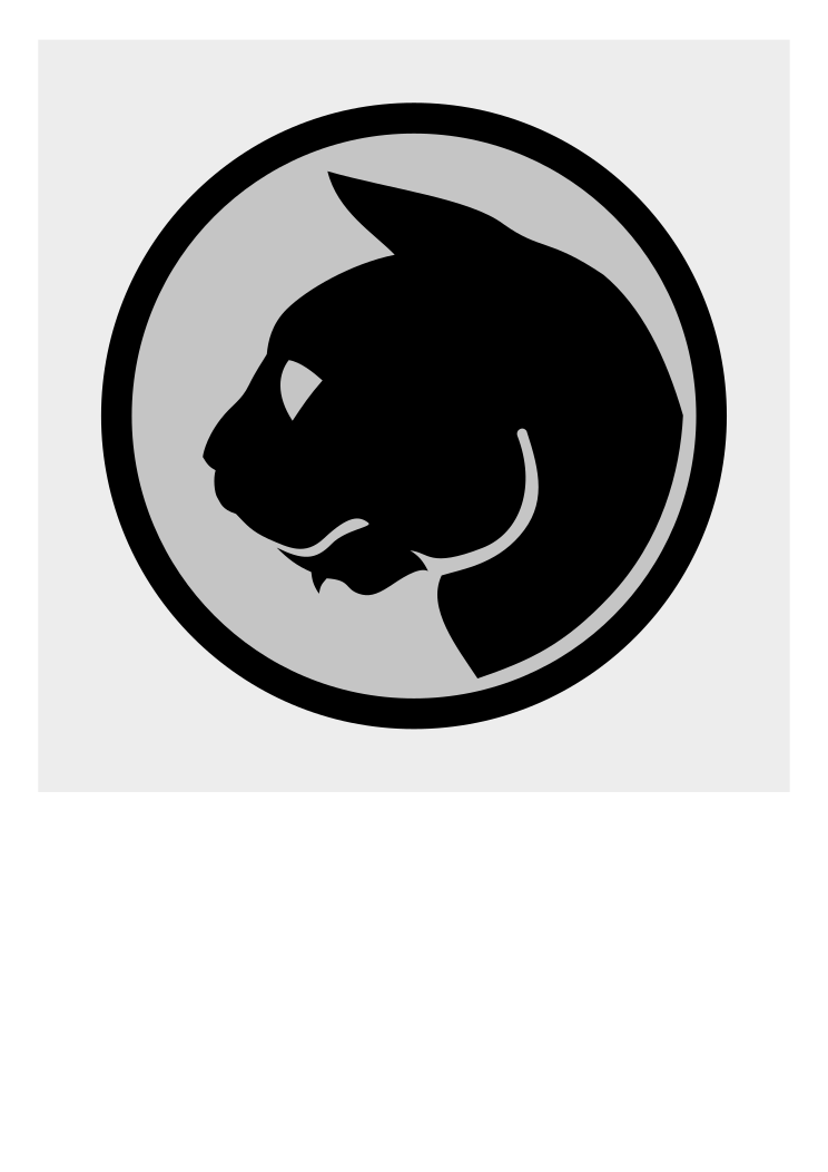 This features a black and white cat logo, which is the main focus of the picture. The cat's head is prominently displayed in the center of the logo, with its mouth open as if it were growling or showing teeth. The cat's eyes are also visible, adding to the realistic appearance of the image. The overall design of the logo gives a sense of strength and power, making it an interesting and eye-catching symbol.