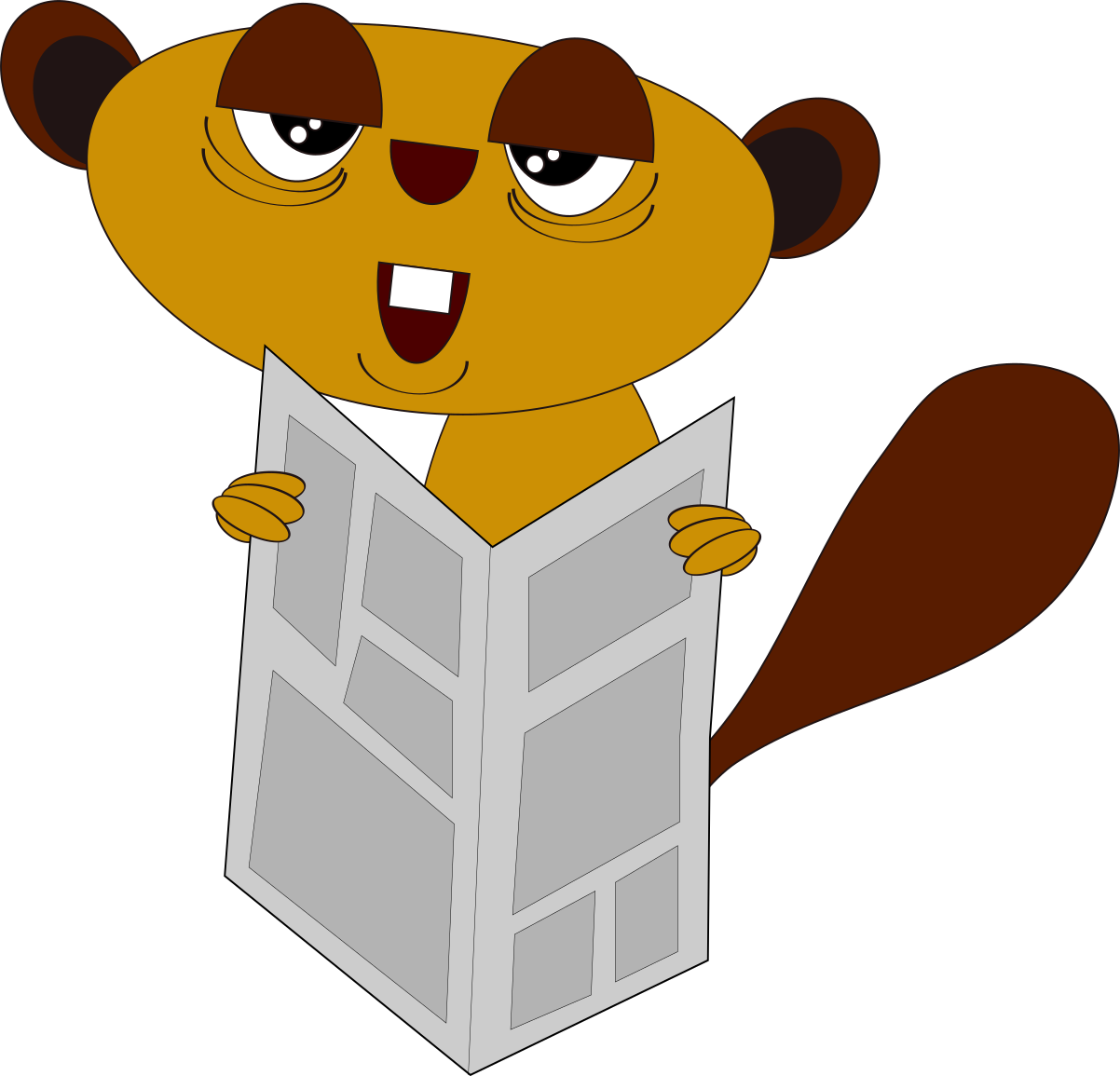 This features a cartoon character, possibly a squirrel or a beaver, holding an open newspaper in its hands. It appears to be reading the news while standing up and looking at the camera. The character is positioned towards the left side of the frame, with the newspaper occupying most of the right half of the image. The cartoon's facial expression suggests that it might be engaged or intrigued by the content of the newspaper.