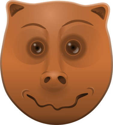 This features a brown face with a smile, giving it an amusing and friendly appearance. It appears to be a close-up of the face, possibly from a cartoon or a sculpture. The facial expression is quite prominent, making it stand out as a unique and engaging visual element.