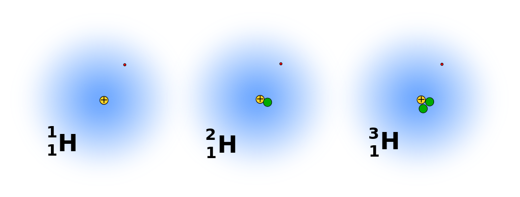 This displays a series of three isotopes of hydrogen, each with different atomic weights. These isotopes are represented by the numbers 1H, 2H and 3H, which correspond to their respective atomic weights. Each isotope is depicted in a separate box on the screen, showcasing the differences between them. The image provides an interesting visual representation of these hydrogen isotopes, highlighting their unique properties and roles within the scientific community.