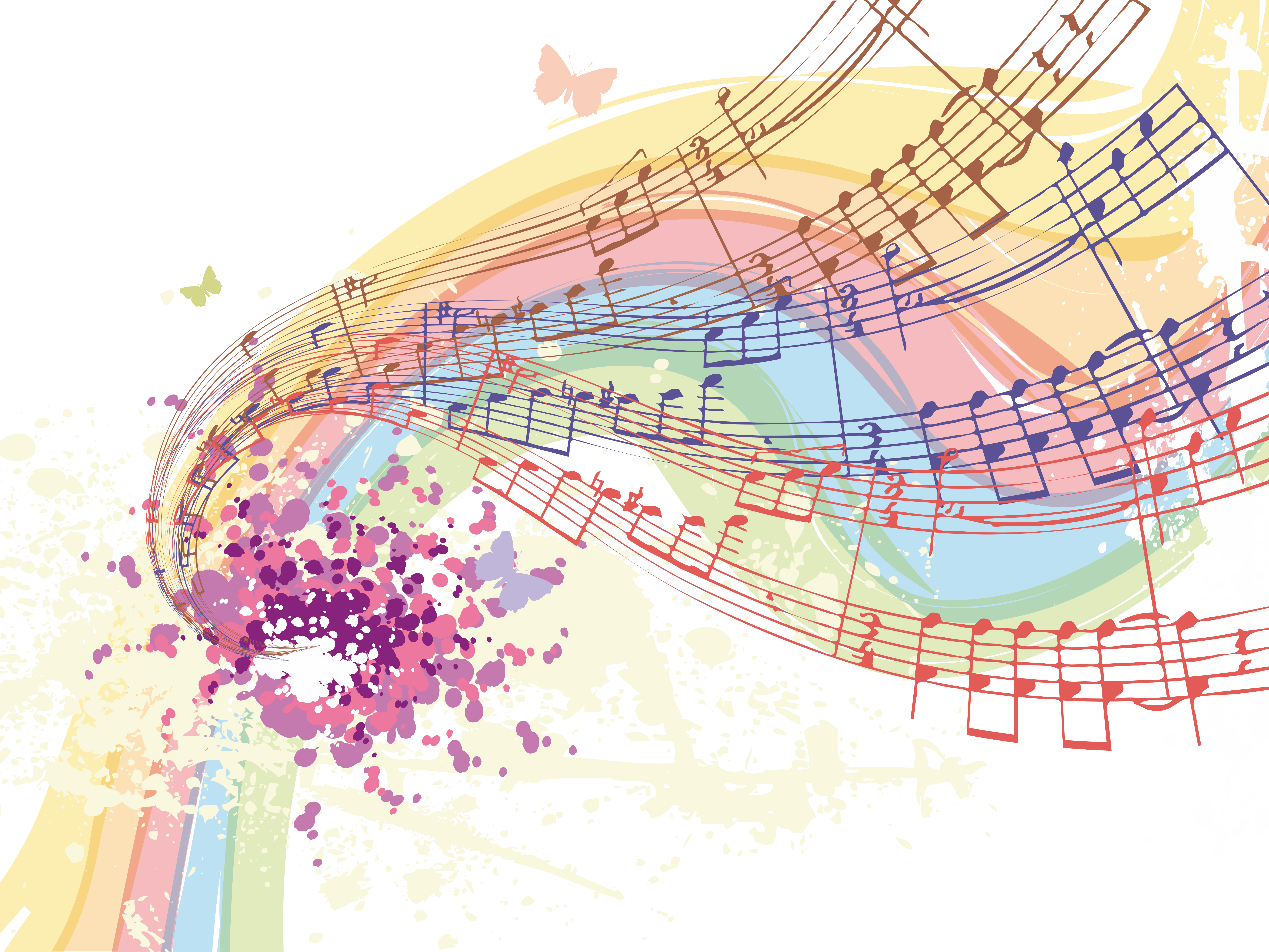This features a colorful musical design that includes multiple lines of music. These lines are intertwined and create an intricate pattern, giving the impression of a flowing river or a swirling vortex. The design is filled with various colors, including pink, yellow, blue, green, orange, and purple, which adds to its vibrant and lively appearance. The musical notes are scattered throughout the image, creating an artistic representation of music that captures the essence of melody and harmony.