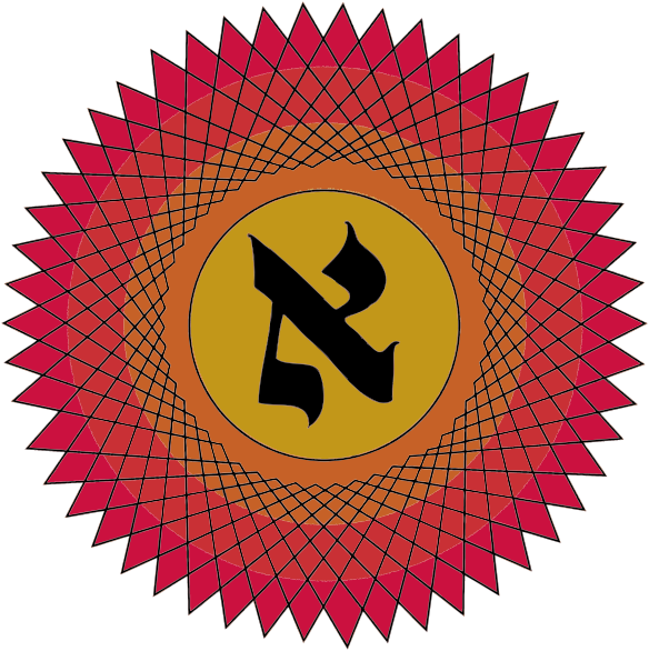 This features a red and yellow circle with a large Aleph in the center. The Aleph is written in black, contrasting against the vibrant colors of the circle. This design could be used for various purposes such as decoration or to convey a message related to the Hebrew language. The Aleph symbolizes the first letter of the Hebrew alphabet and is often associated with the concept of "No" in this context.