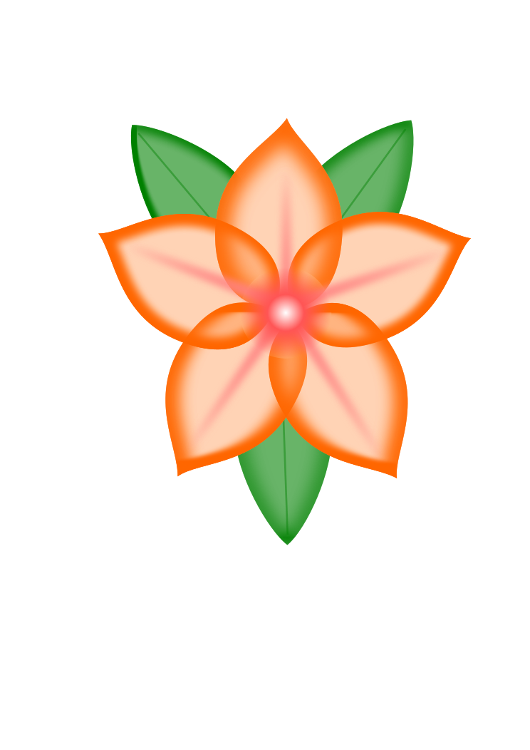 This features a beautifully drawn orange flower with three green leaves. The flower is the main focus of the picture, and it appears to be the centerpiece of the scene. The vibrant colors of the flower stand out against the background, making it an eye-catching element in the composition. The combination of the orange petals and green leaves creates a visually appealing contrast that draws attention to the flower's unique features.
