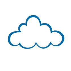 This features a white cloud with a blue outline, giving it an interesting and unique appearance. It is a simple yet visually appealing representation of the cloud, making it suitable for various applications such as logos or icons. The cloud's shape is rounded, adding to its overall charm and simplicity.