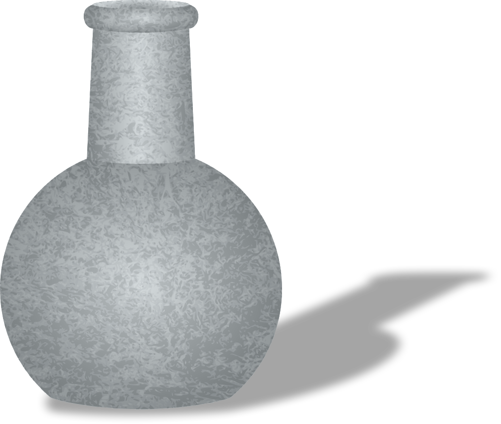 This features a large, old-fashioned glass vase with a greyish color. It is placed on a table or countertop, and its shadow can be seen behind it. The vase appears to be made of stone, giving it an antique appearance. Its size and design make it suitable for holding flowers or other decorative items, adding a touch of elegance to any space where it is displayed.
