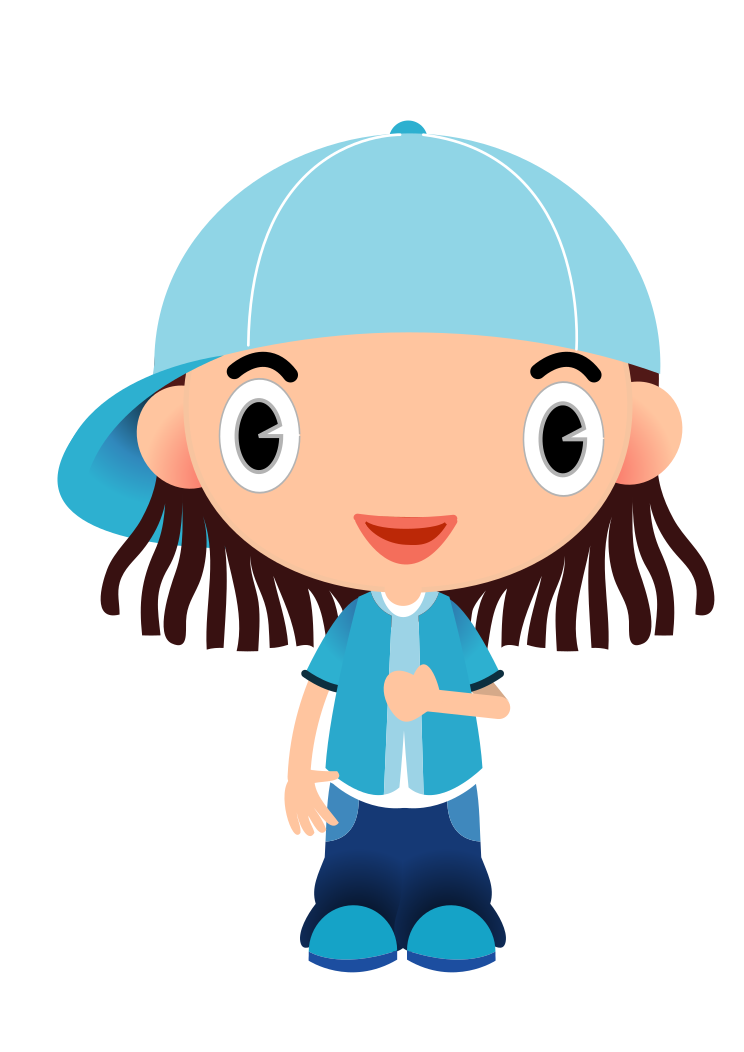 This features a cartoon girl wearing a blue hat and a blue outfit. She has brown hair, and she is smiling at the camera. Her attire includes a shirt with a collar and a pair of jeans. The overall appearance of the character suggests that she might be a young child or a teenager. The cartoon style of the image adds a playful and fun element to the scene, making it an appealing visual for viewers.