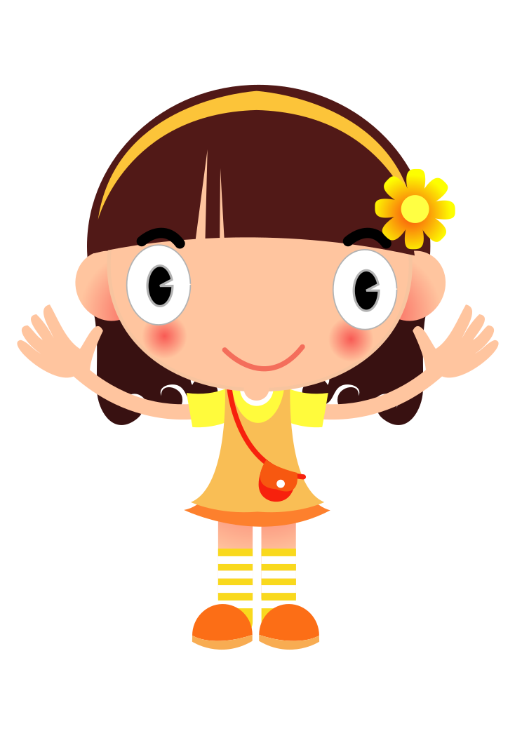 This features a happy girl with brown hair, wearing an orange dress and yellow shoes. She is holding her hands up in the air, giving off a cheerful vibe. Around her neck, she has a cute little flower-shaped hairband that adds to her playful appearance. Additionally, she is carrying a crossbody bag with her, which complements her outfit. The girl's overall look exudes positivity and joy.