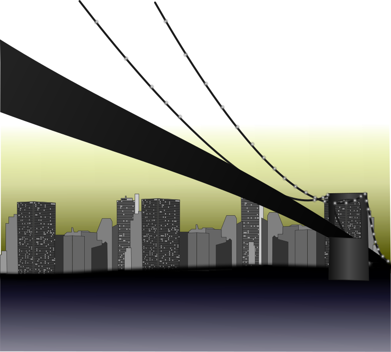 This features a city skyline with tall buildings and a large gray bridge spanning across the scene. The bridge is suspended above the city, creating an impressive visual effect. The cityscape is bustling with activity, as evidenced by the numerous buildings that make up the urban landscape. This captivating image showcases the beauty of both the city and its iconic bridge.