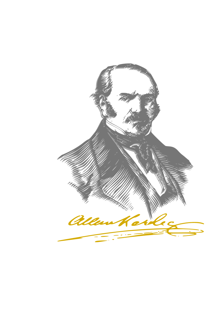 This features a portrait of Allan Kardec, an influential figure in the history of spiritualism. He is depicted as a man with a beard and mustache, wearing a suit and tie. The portrait is in black and white, giving it an old-fashioned appearance. The background consists of a light brown color that contrasts well with the subject's attire. This image likely serves as a representation or tribute to Allan Kardec's contributions to spiritualism and his lasting impact on society.