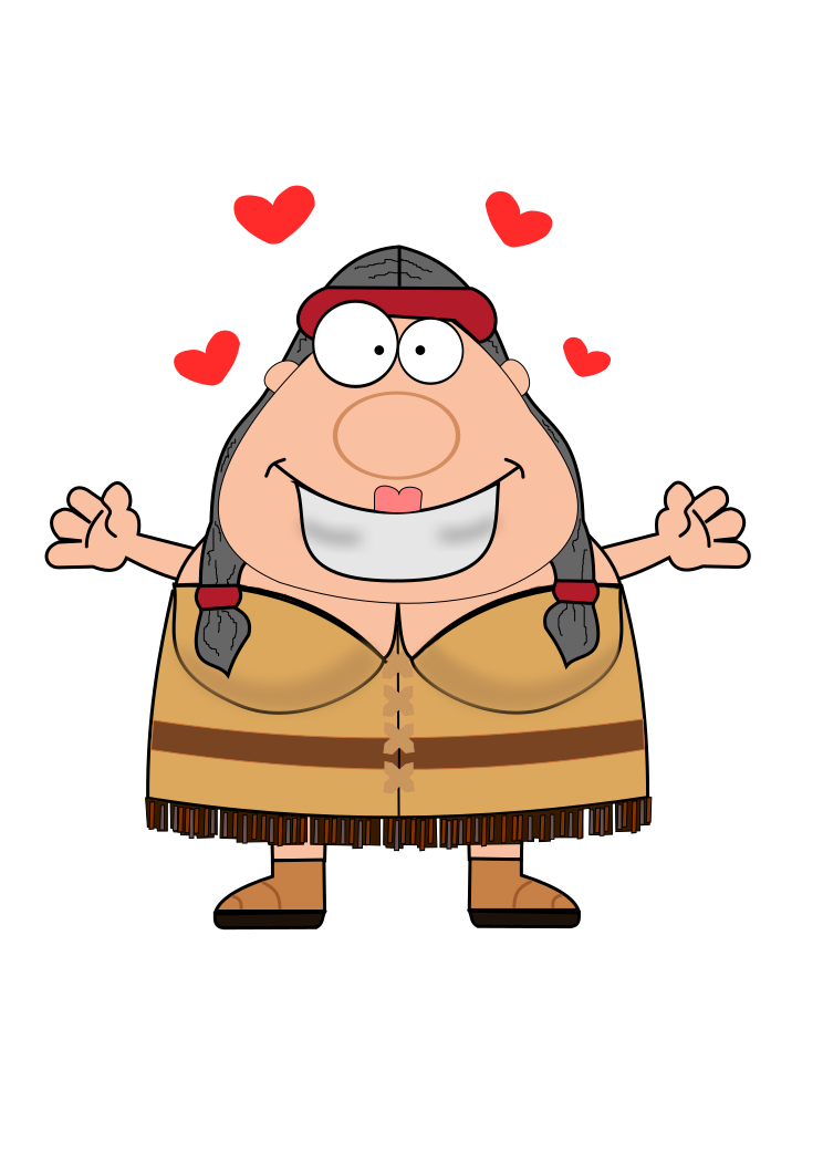 This features a cartoon character, possibly an Indian woman or a Native American, wearing a feathered headdress and holding up her arms in the air. She is smiling and appears to be enjoying herself. The character has a heart on her head, adding a playful touch to the scene. The overall atmosphere of the image suggests a celebration of Indian folklore or culture.
