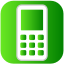 This features a green square with the outline of a cell phone. Inside the square, there is an actual cell phone displayed in various colors, including green and white. The cell phone appears to be a modern smartphone, possibly used for communication or entertainment purposes. The design of the image suggests that it could be used as a logo or icon representing mobile technology.