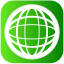 This features a green and white globe, which is the icon for the World Wide Web. This icon represents the internet and its global reach. The globe is surrounded by a circle with a green background, giving it an appealing and modern look. The design of this icon makes it easily recognizable as a symbol for the internet, making it suitable for use in various contexts such as websites or digital applications.