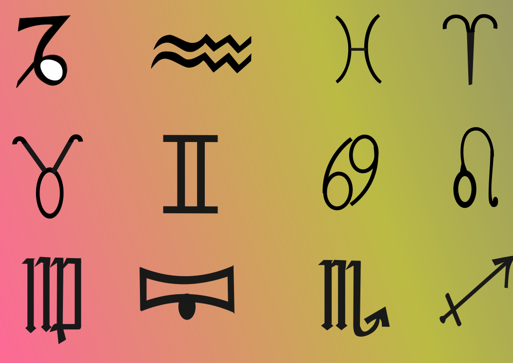 This displays a variety of symbols and letters, including numbers and alphabets. There are several different types of letters, such as the uppercase and lowercase alphabet, along with various other symbols like zodiac signs. These symbols are arranged in rows, creating an organized display. Some of these symbols include the number seven, which is located near the top left corner, and a few others scattered throughout the image. The combination of letters and symbols creates a visually interesting and diverse collection.