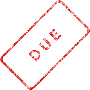 This features a red stamp with the word "due" written in bold letters. The stamp has a rectangular shape and is placed on top of a white background, making it stand out prominently. The word "due" appears to be the main focus of the stamp, indicating that it may be used for marking or labeling documents related to payments or obligations.