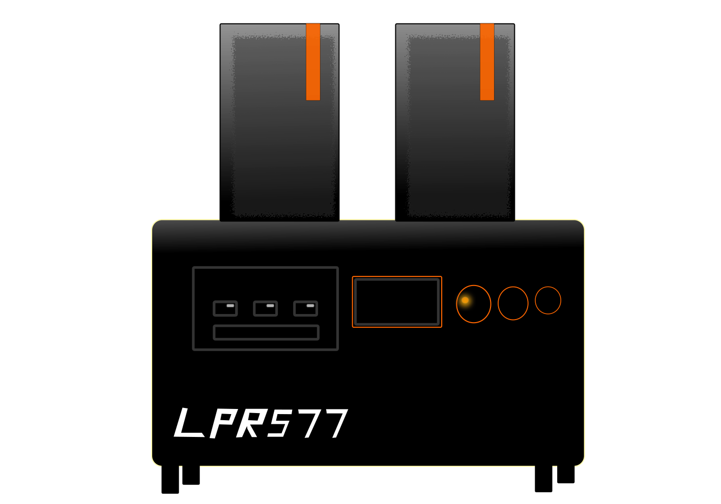 This features a black and orange speaker-sound system with two speakers on top of each other. The speakers are placed next to each other, creating an interesting visual effect. The design of the speakers is reminiscent of a vintage style, giving them a classic appearance. The combination of black and orange colors adds a touch of contrast to the overall design, making it stand out in any setting.
