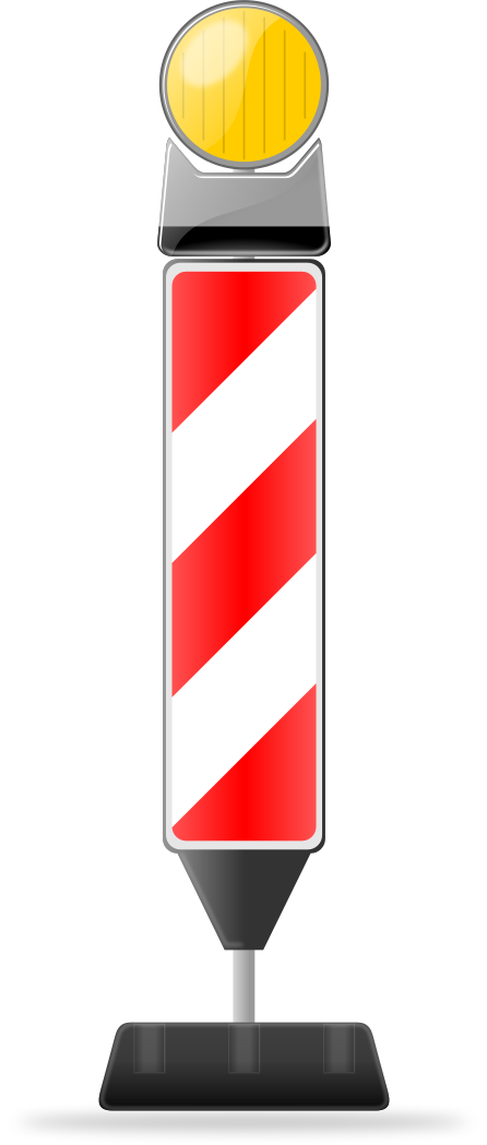 This features a red and white striped object, which appears to be a traffic sign or a warning device. It is placed on top of a black base, giving it an elevated position. The sign has a yellow circle in the middle, possibly indicating that it serves as a visual cue for drivers or pedestrians. The combination of red and white stripes with the yellow circle creates a distinctive appearance, making it easy to spot from a distance.