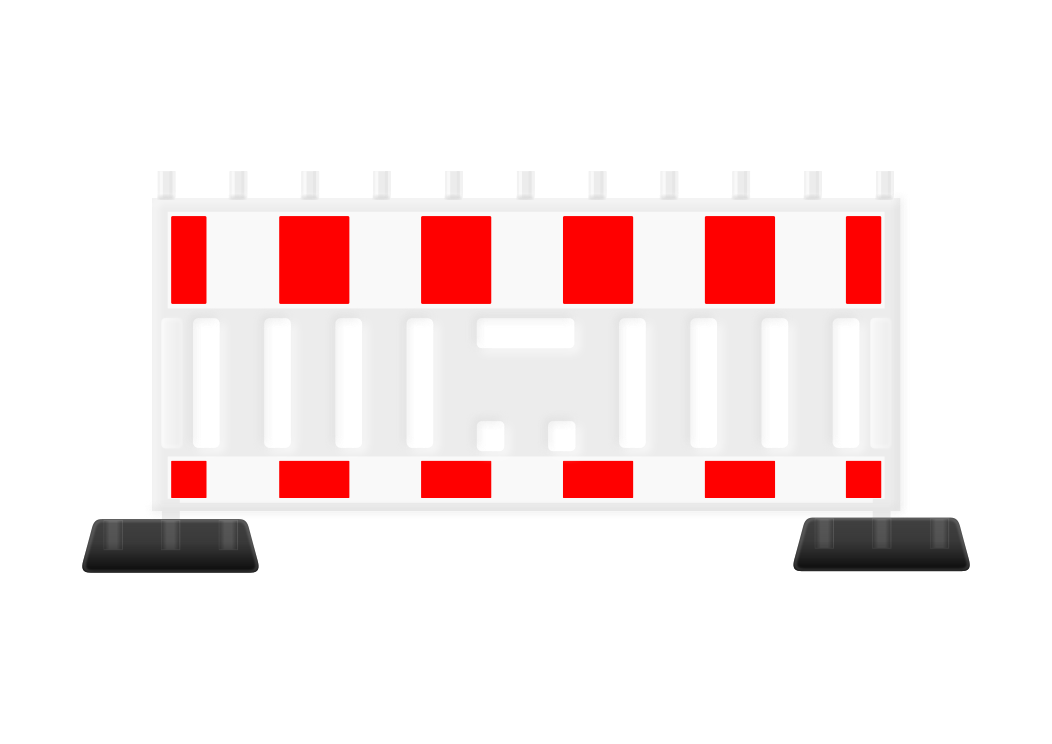 This features a large red and white striped barrier, which is commonly used to block off construction sites or other hazardous areas. This particular barrier has a unique design with multiple rows of red and white stripes, making it stand out against the background. The barrier appears to be placed on a flat surface, possibly in front of a building or an area that requires protection from unauthorized access. Overall, the image showcases a sturdy and visually striking safety measure for construction sites or other similar environments.