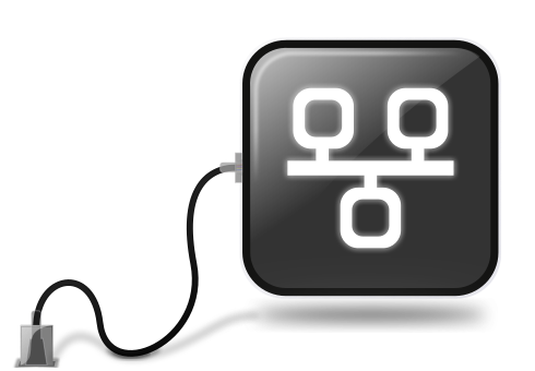This features a black square with an icon in the center. This icon is surrounded by two white dots, which are located on either side of it. The square appears to be connected to a wire, possibly indicating that it's part of a larger system or device. The overall design and color scheme give off a modern and sleek vibe.