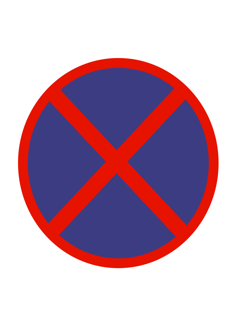 This features a blue and red circle with a white background. Inside the circle, there is a large red X that covers most of the space. This design gives an impression of a no entry or do not enter sign. The color scheme of the circle consists of blue for the outer part and red for the inner part, creating a striking contrast between the two colors.