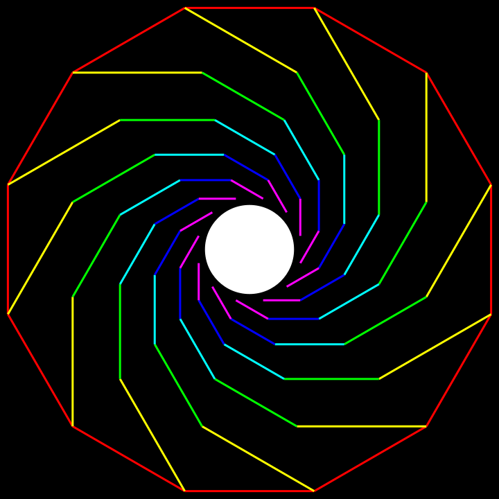 This is a black and white drawing of a circle with many different colored lines coming out from it. These lines are arranged in various patterns, creating an intricate and visually interesting design. The circle itself appears to be the centerpiece of the artwork, surrounded by the vibrant colors and unique patterns created by the lines. Overall, the image showcases a creative and imaginative use of color and line to create a captivating visual experience.