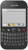 This features a smartphone with a keyboard, but the keys are not labeled. The phone is black and has a screen displaying a message or text. It appears to be an old model of a cell phone, possibly from the early 2000s. The device's design suggests that it was used for communication purposes before the widespread use of smartphones with touch screens.