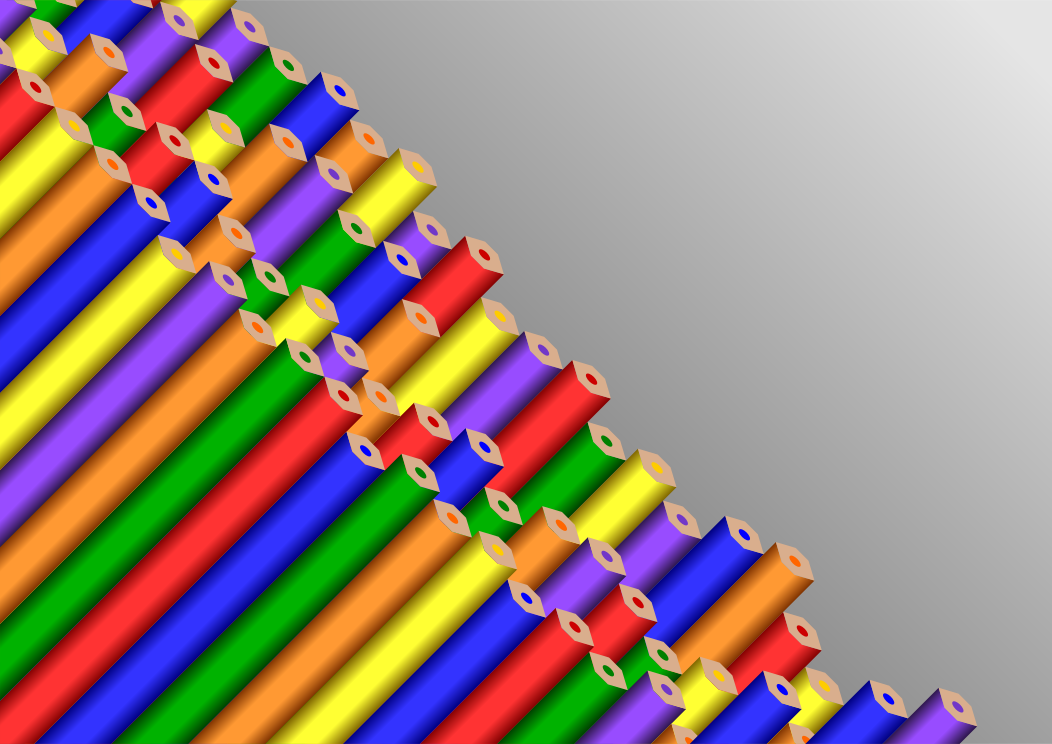 This features a large pile of colored pencils, with each pencil having a different color. There are at least 13 distinct colors visible in the scene, creating an eye-catching display. The pencils are arranged on top of one another, forming a visually appealing stack that showcases their vibrant hues. The background of the image is a neutral grey tone, which contrasts nicely with the brightly colored pencils and adds depth to the scene.