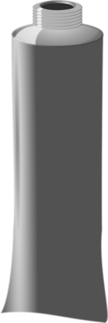 This features a large, empty tube of some sort. It is situated against a grey background that appears to be a wall or a surface. The tube itself has a white and grey color scheme, giving it an overall clean appearance. Its size and shape make it suitable for holding various substances such as paint, dye, or other ingredients.