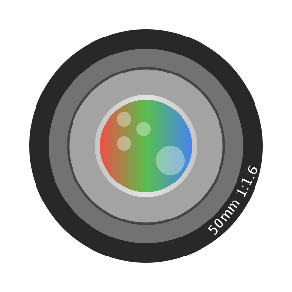This is a circle with a colorful, rainbow-like pattern inside it. This design resembles an aperture or lens, which is commonly found in photography equipment. The colors of the rainbow are arranged in a circular fashion, creating a visually appealing and unique design.