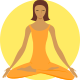 This features a woman sitting in the lotus position, wearing an orange dress. She has her eyes closed and appears to be meditating or practicing mindfulness. Her hair is brown, and she seems to be focused on her inner thoughts or breathing exercises. The scene takes place within a yellow circle, which adds a sense of warmth and tranquility to the image.