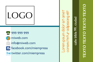 This showcases a business card template with the name "Logo" written in bold letters. Below this, there is an advertisement for a website called "Miepressa," which appears to be a Spanish language site. The card also features a Facebook logo and a Twitter bird, indicating that these social media platforms are being promoted as well. Additionally, the card has a section for contact information, including a phone number and email address. Overall, this business card template is designed with a modern and professional appearance in mind.