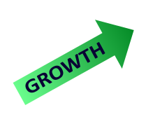 This features a green arrow pointing upwards, with the word "Growth" written on it. This symbol is likely used to represent growth or progress in some context, such as business or personal development. The arrow's color and bold text make it easily recognizable and attention-grabbing.