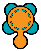 This features a colorful and unique logo, which appears to be an orange circle with blue and green accents. Inside the circle, there are four smaller circles arranged in a way that resembles a turtle's head. These smaller circles have different colors, including blue, green, and yellow. The overall design of the logo is visually appealing and eye-catching, making it an interesting focal point for any project or product it may represent.